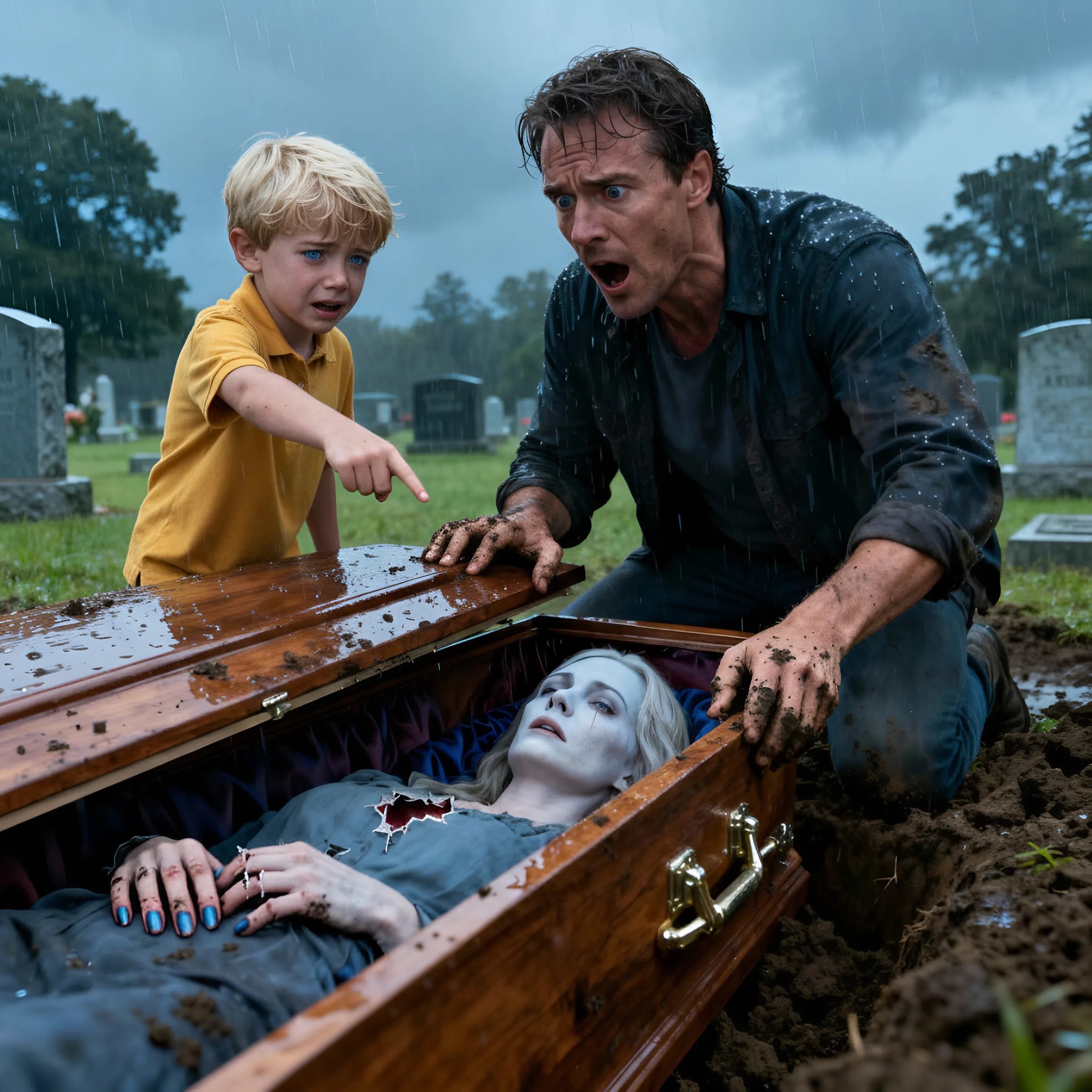 Michael respiraba entrecortado. Su hijo, con el rostro cubierto de lágrimas y barro, no apartaba los ojos del ataúd.