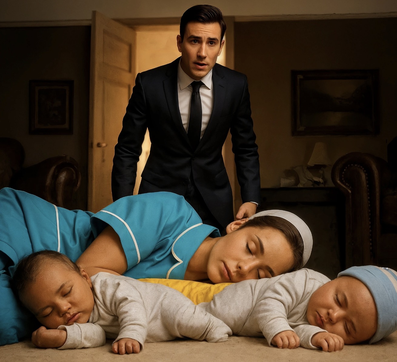 El millonario cruzó el umbral a medianoche y se quedó paralizado al ver a la ama de llaves dormida junto a sus gemelos.