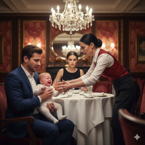 El restaurante Lever Blue, uno de los templos culinarios de Manhattan, había logrado lo imposible: silenciar a su selecta clientela por unos segundos. Los cubiertos quedaron suspendidos en el aire, las conversaciones murieron y la música de jazz que sonaba de fondo pareció desvanecerse. Todo por un llanto. No era un sonido cualquiera, sino el grito desesperado de Leo, el bebé de once meses del multimillonario Adrien Mercer, un hombre célebre por su frialdad en los negocios y por nunca perder el control.