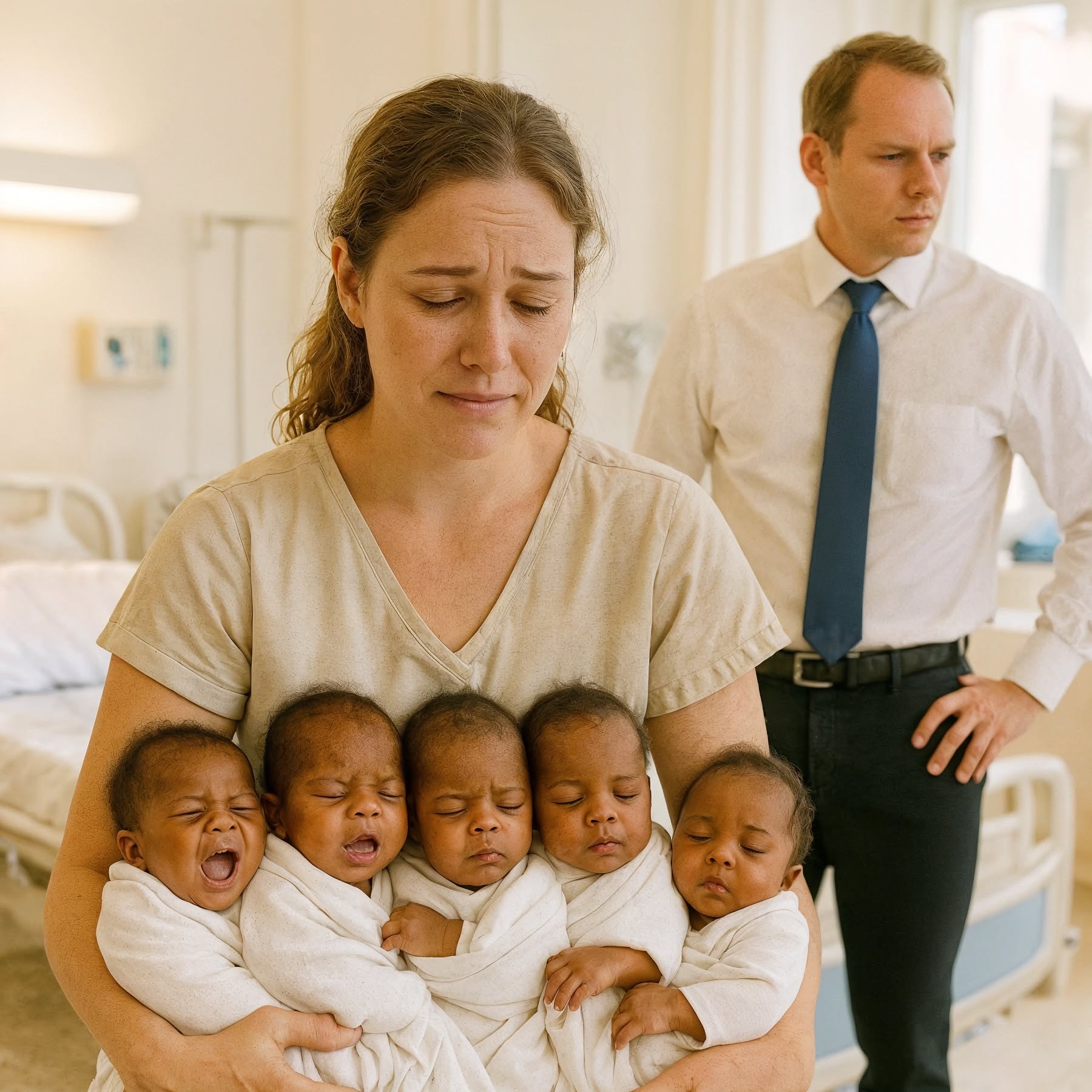 La sala de maternidad resonaba con cinco vocecitas llorando a la vez. La joven madre, exhausta, sonreía entre lágrimas mientras contemplaba a sus quintillizos. Eran pequeños, frágiles, pero perfectos.