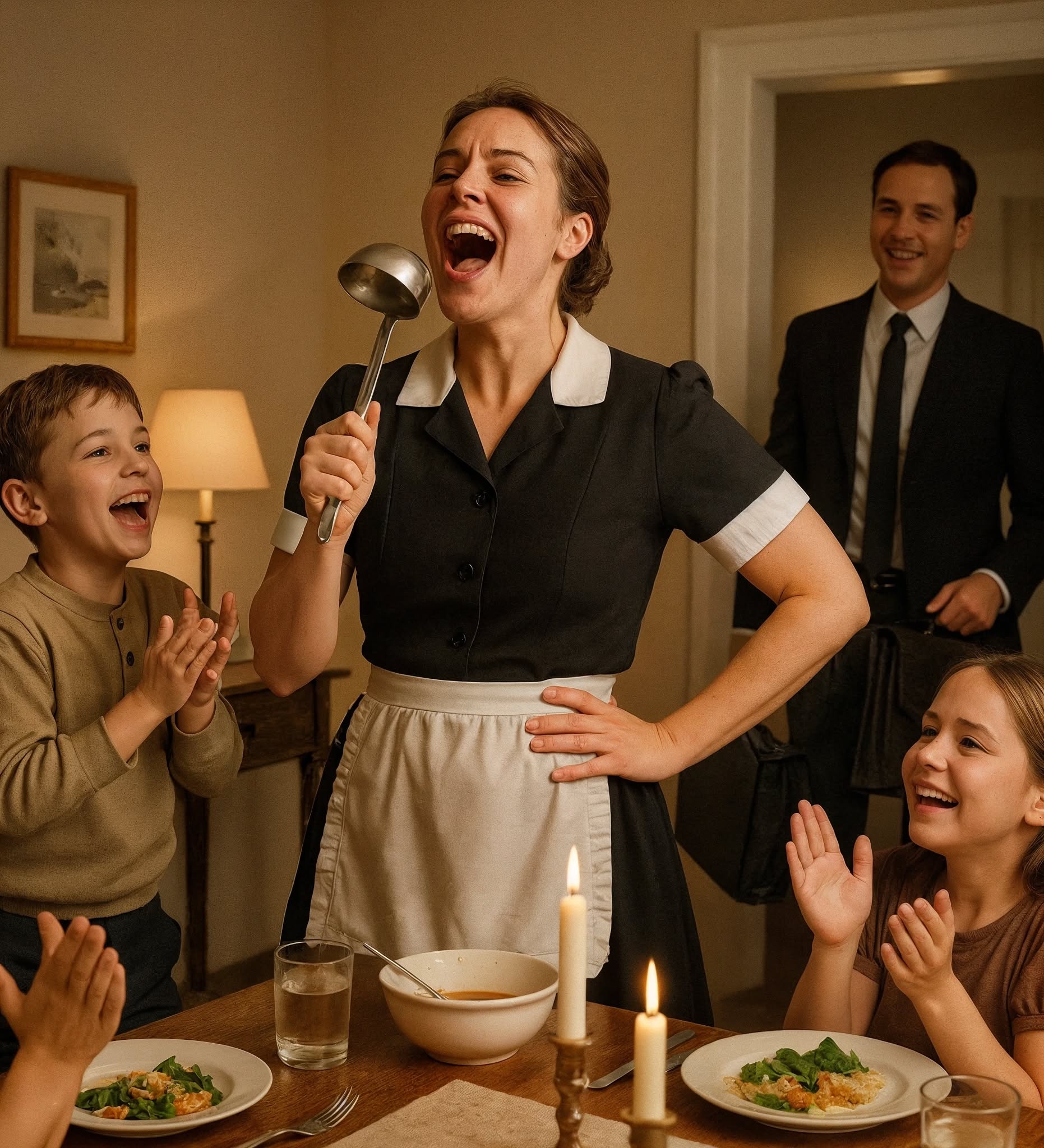 Esa tarde, el coche de Adrian se detuvo silenciosamente en el camino de entrada. El sol aún brillaba en lo alto, y su luz dorada se derramaba sobre los escalones de mármol de la mansión. Al entrar, esperando silencio o el suave murmullo del servicio, se quedó paralizado. Desde el gran comedor resonó una risa: una risa genuina y vibrante, de esas que no se oían allí desde hacía años.