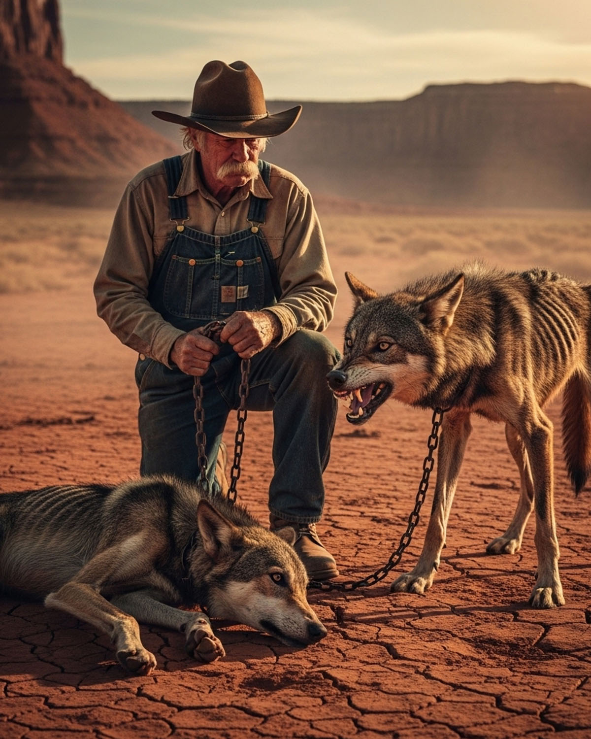 El sol abrazador del mediodía de exano castigaba sin piedad cuando Jake Morrison divisó algo que hizo hervir su sangre de indignación. Allí, en medio de la nada, atado a una estaca de hierro clavada en la tierra árida, estaba un lobo adulto. Pero no era solo eso lo que partía el corazón del vaquero experimentado.