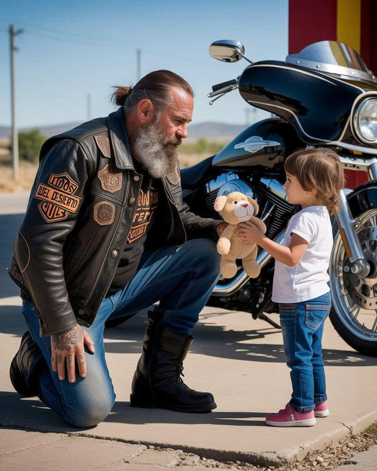 Una niña le dijo al motociclista: “¿Quieres ser mi papá? Mi papá está en la cárcel por matar a mi mamá. Mi abuela dice que necesito uno nuevo. ¿Quieres ser mi papá?”.